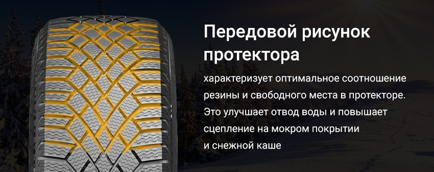 Дополнительно к этому в ContiVikingContact 7 «немцы» отошли от своего конька в виде ассиметричного рисунка в пользу более строгих форм. Разработанный « с нуля» дизайн выполнен симметричным с ромбовидными блоками в центральной части. Образуемые ими кромки располагаются под большим углом, увеличивающим их общую протяженность. Все это напрямую влияет на показатели продольного и поперечного сцепления, исключая возможность аквапланирования, что чрезвычайно важно в межсезонье.