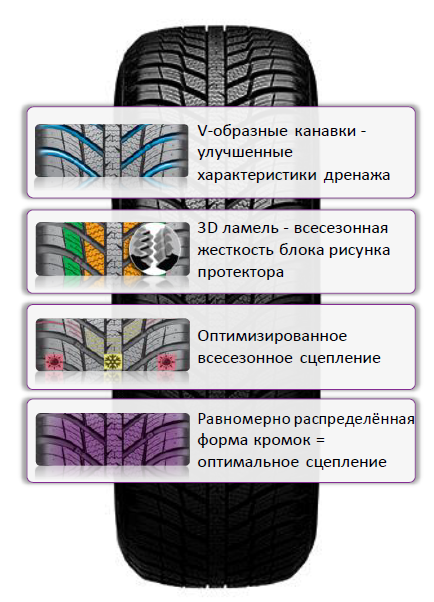 Nexen N Blue 4Season — высокоэффективные всесезонные шины для компактных и среднеразмерных автомобилей. Модель ориентирована на круглогодичную эксплуатацию в условиях умеренного климата и предлагает сбалансированные характеристики на сухом и мокром покрытии.